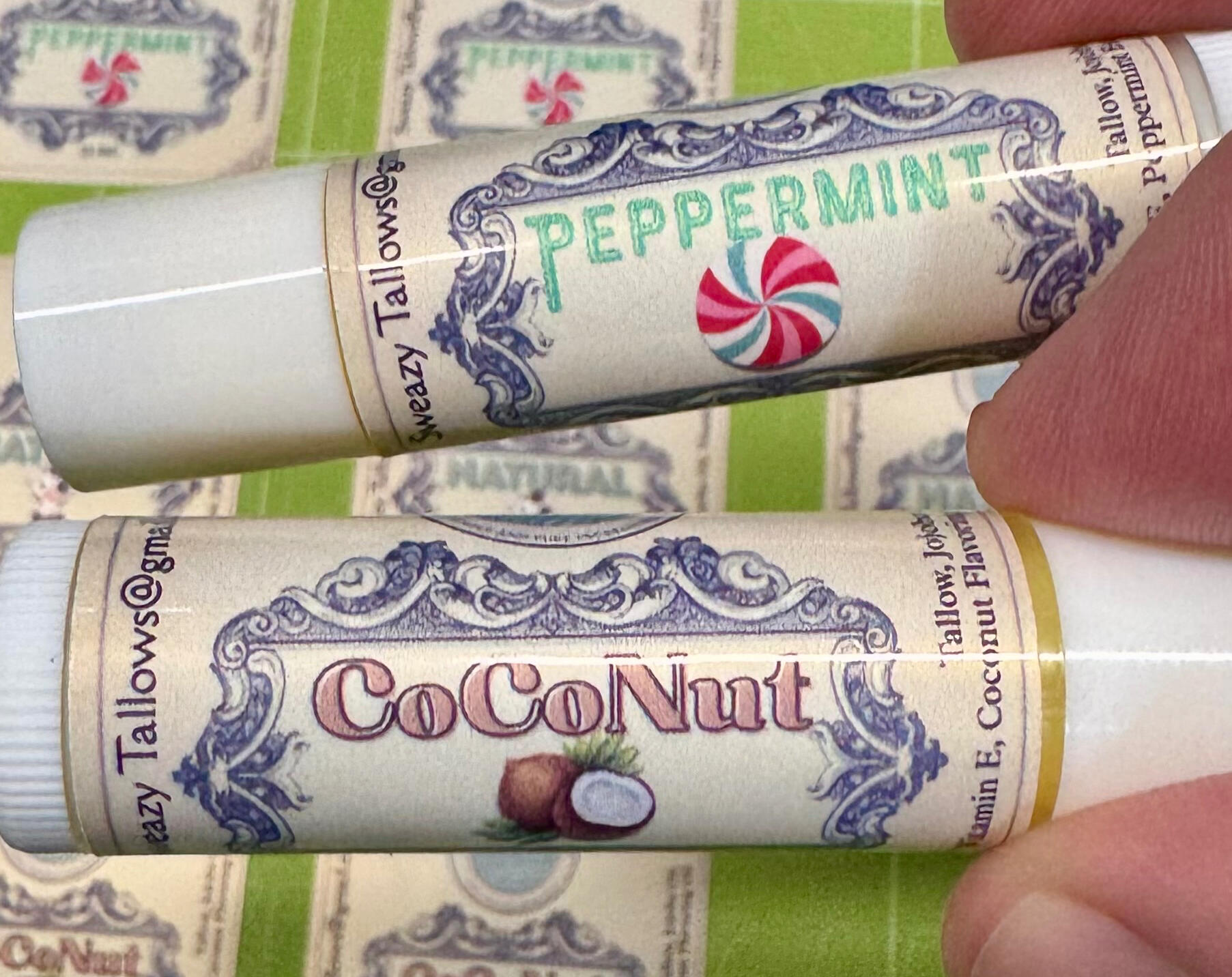 – Essential Oil (varies): Natural scent and flavor.Flavors: Peppermint, Coconut, Strawberry, and Natural$3 per